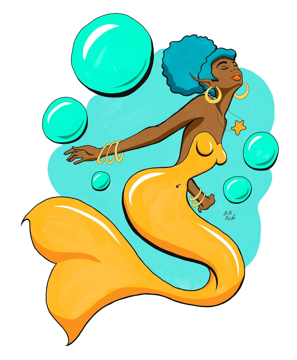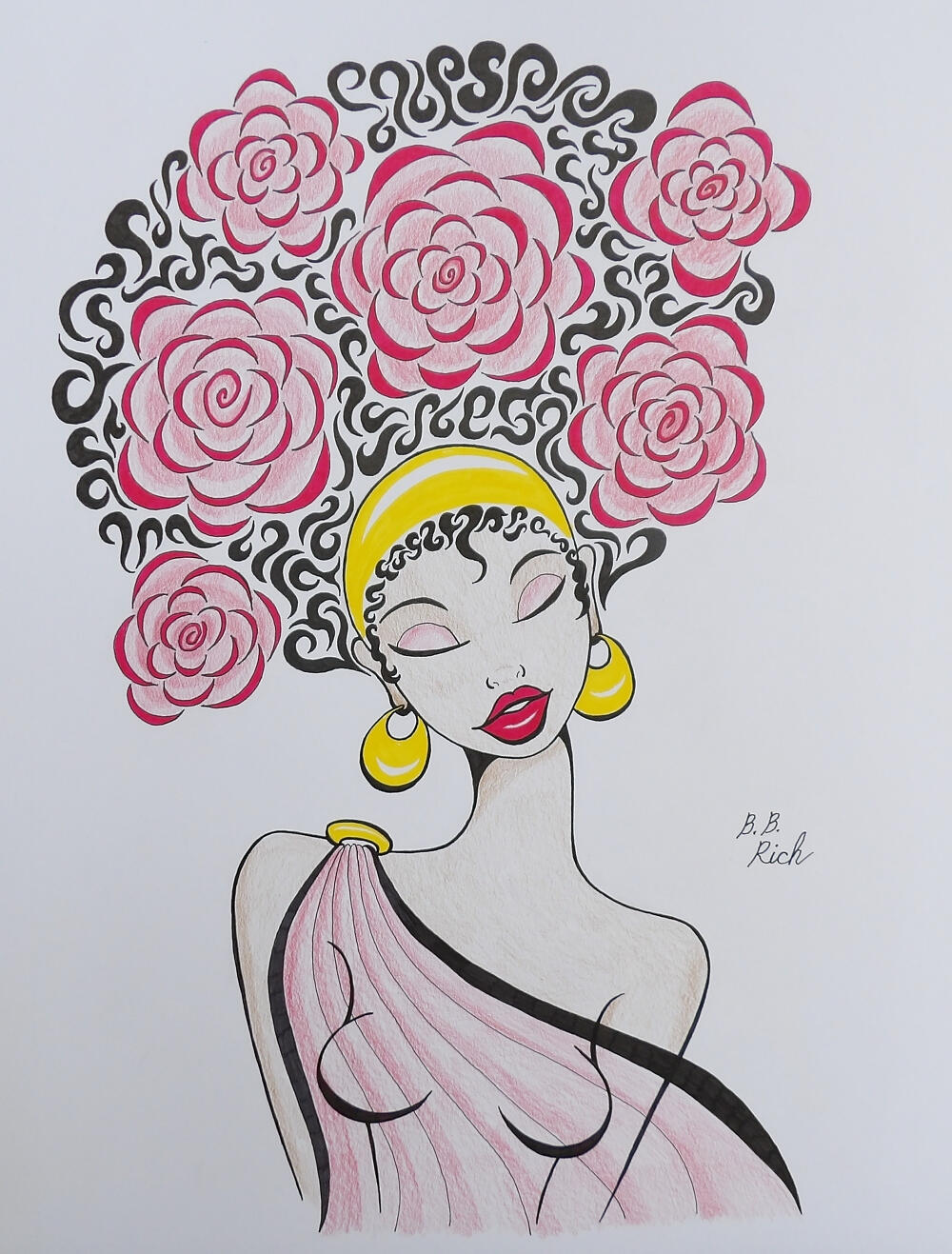 Bringing Ideas to LifeThe fact that we humans have the ability to bring our ideas to life is amazing to me. We can conceive something in our minds, work out how to bring it to fruition, and then bring it into the world. That's the concept that inspired this piece, Brilliance in Bloom.The flowers in this lady's hair, while beautiful, are more than just a simple decoration. In fact, they weren't placed in her hair; they're growing from her hair. Those flowers represent her thoughts, insights, and creativity coming into bloom, being brought into the world.This was one of the rare cases of me knowing exactly what the idea was even while the drawing was being worked on. As I went along, it just made sense. I also took a little inspiration from paintings featuring African-American women with an Afro hairstyle filled with flowers. It's such a beautiful image that I wanted to do my own take on it. I might very well visit this theme again.- B.B. Rich