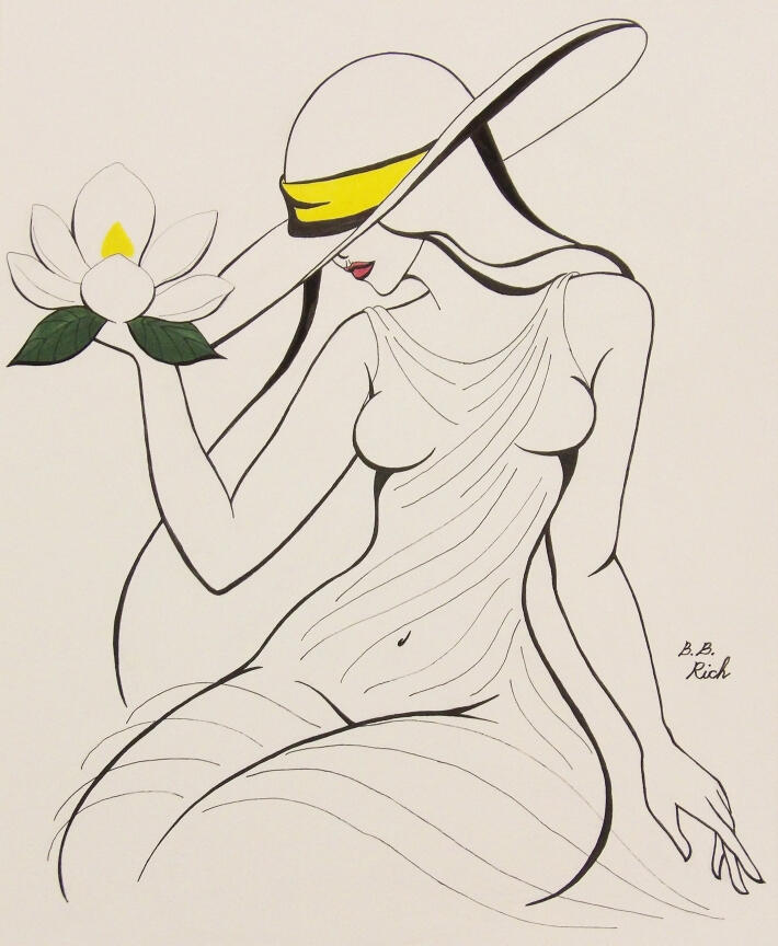 Learning to Love Where You AreI didn't always have an appreciation for living in the South. (For readers from other countries, that's the southeastern region of the United States.) It was frustrating trying to gain any real traction as an artist living in small towns down here. I always thought that I could only make it if I could get to some place with a real, "serious" art community like New York. Looking back, I'm so very glad my life didn't go in that direction. No offense to anyone from NYC at all, you have a beautiful city, but that's just not my kind of place to live.Over the years, as I slowed down, I started to see the beauty of this place. There is, of course, the natural beauty. The South is still a very green place, with forests, rivers, lakes, hills, mountains, and all. Every year the dogwoods and crepe myrtles light up the town and people's yards. The smell of honeysuckles fills the air every summer.But there's more to it than the natural beauty. It's the people who really make this place what it is. It's that Southern culture of hospitality, courtesy, and generosity that I've really come to appreciate. Sometimes people call it "Southern Hospitality" or "Southern Charm." Those qualities helped me learn to appreciate being here instead of always wishing I could be somewhere else - to make the choice to bloom where I've been planted for now.That was the inspiration behind Southern Grace. The lady is drawn in the style of a classical Greek statue, gracefully posed and draped with flowing cloth. But with her big sun hat and the magnolia blossom in her hand, she's got a touch of Southern flair. A simple, primarily black and white drawing approach seemed best for this.There's beauty in every place and culture, which is why people so often love the place they came from. Sometimes we take it for granted. It might take some time and experience to slow down and learn to appreciate it, and shift that mindset from "I'm stuck here" to "I love it here."- B.B. Rich