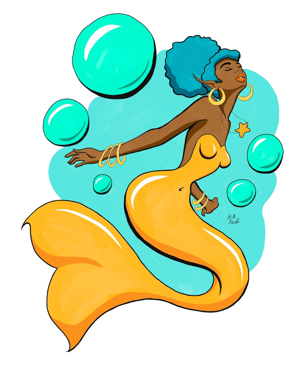 Dancing to Your Own BeatThis colorful, dancing mermaid drawing was a lot of fun to create. She's free to dance to her own beat and sing with her own voice. Even if no one else can hear the music, she knows it's there, and she's moving to it. There's nothing quite like having the freedom to be yourself, even if sometimes other people don't quite understand it. As an artist, it reminds me of what it's like to find your own style.Finding a unique style is something almost every artist worries about at some point. It's understandable. Everyone wants their work to stand out, after all. Personally though, I don't think it's as much of a worry as it's made out to be. It seems to me that this is something we overthink and overcomplicate.When it comes down to it, I think style is simply the distilled mix of what you like to create, and how you like to create it. The materials you like to work with, the tools you like to use, the subject matter you find most enjoyable or meaningful. All those things come together, with time, to make your art unique to you. If you keep creating what you like to create, it's just about impossible not to have your own unique style. Even artists who specifically mimic another artist's style will have their own little distinctions.To me, the real challenge isn't finding a style, but hanging on to it once you have it. This is especially true if you're self-taught. It can really be a struggle to have confidence in your own work when you don't have formal training, and you're surrounded by pressure to conform to others' opinions. If your style has personal meaning for you, though, it's really important to hang on to it. I've made the mistake before of trying to change my art for the wrong reasons; in the end all it does is make my art feel like it's not "mine" anymore. I don't think I'm the only one who's been through that.Thankfully, the confidence to believe in yourself and your style isn't something you have to be born with. It's a skill that can be learned with time and practice. The more you show your work and get used to talking about it, the more confident you'll become. That confidence will naturally help you trust your own process and love your own work. I know that's how it worked for me.- B.B. Rich