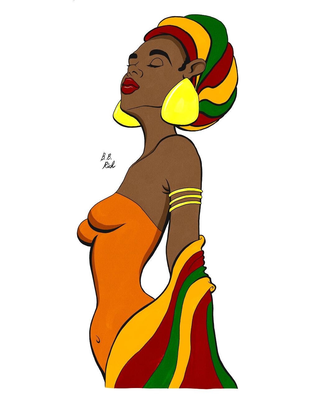 Light from WithinHave you ever met someone who just seems to have an inner glow about them? Maybe their personality just radiates friendship or peace. Even when things seem awful, that person has a sense of inner joy that just doesn't go away. It's a joy to be around them. That light from within a person is what inspired this artwork.She's painted with vibrant, warm colors, from her skintone to her headwrap and clothing, to illustrate that inner glow. It was both a challenge and a pleasure to match up just the right colors and achieve a little bit of depth. I think this is also a theme I might revisit again in the future.- B.B. Rich